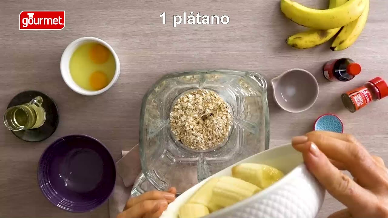 En un tazón, machaca un plátano maduro hasta obtener un puré suave. Añade media taza de avena en hojuelas y dos huevos, luego mezcla hasta que todos los ingredientes estén bien incorporados.
